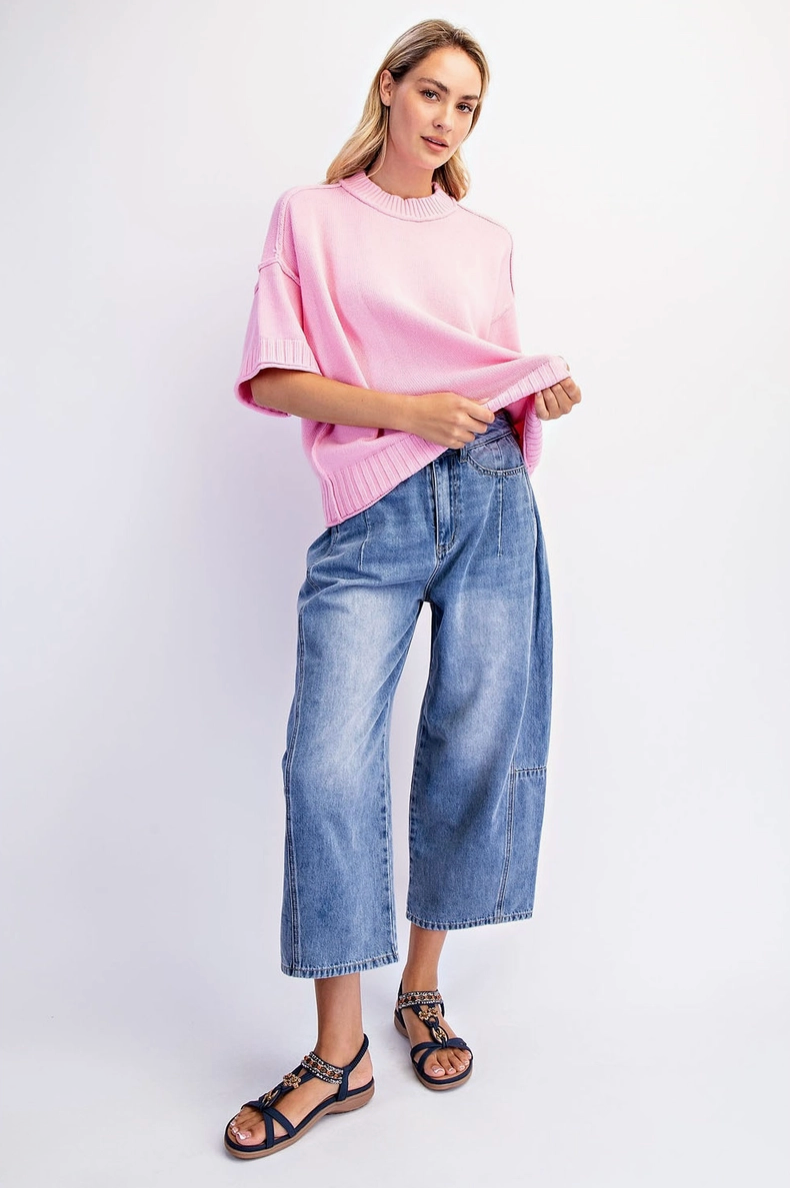 Perfect for outfits for women, our oversized sweaters offer a stylish and comfortable fit ideal for any occasion. Designed with a crew neck, half sleeves, and ribbed cuffs, this sweater combines casual elegance with a trendy oversized style, suitable for women and girls alike. 60% cotton, 40% acrylic.