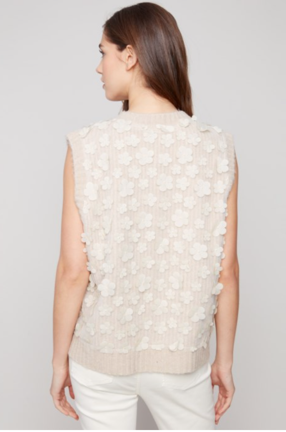 Floral Mesh V-Neck Drop Shoulder Sweater Vest