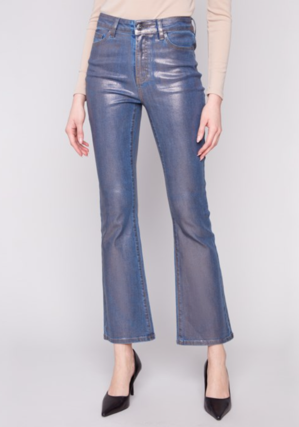 Bootcut Leg 5 Pocket Stretch Foil Denim Pants