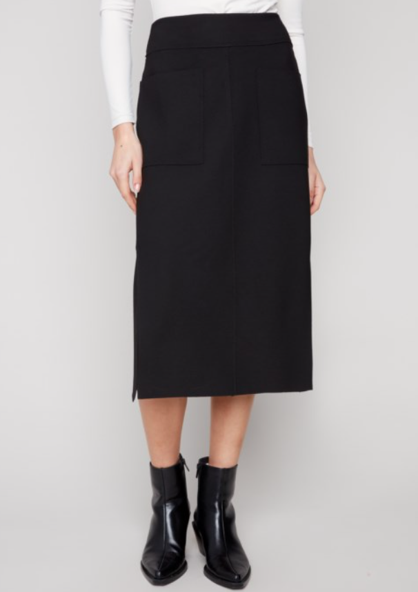 Gusty Crepe Skirt With Front Patch Pockets And Side Slits