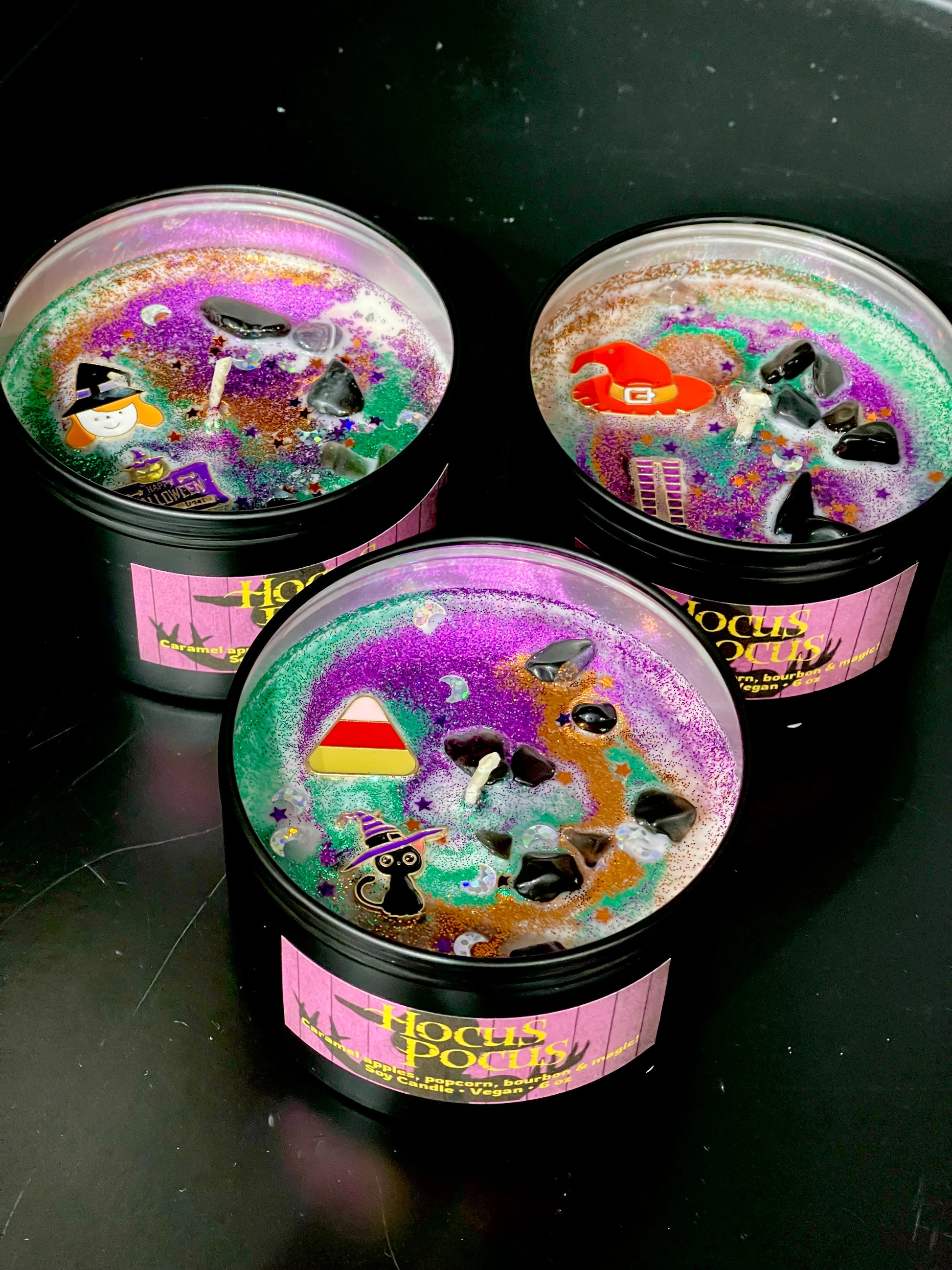 -Contains: Made with soy wax, essential oils, fragrance oils, and charms.