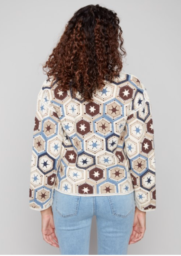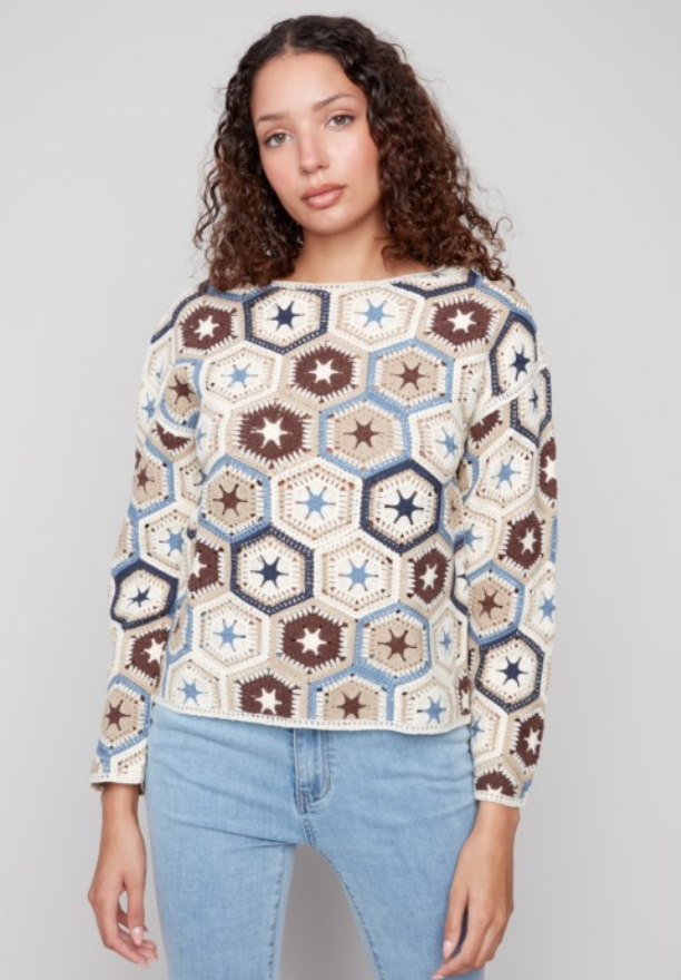 Multicolor Long Sleeve Crochet Boat Neck Top