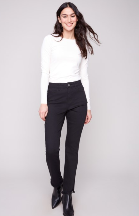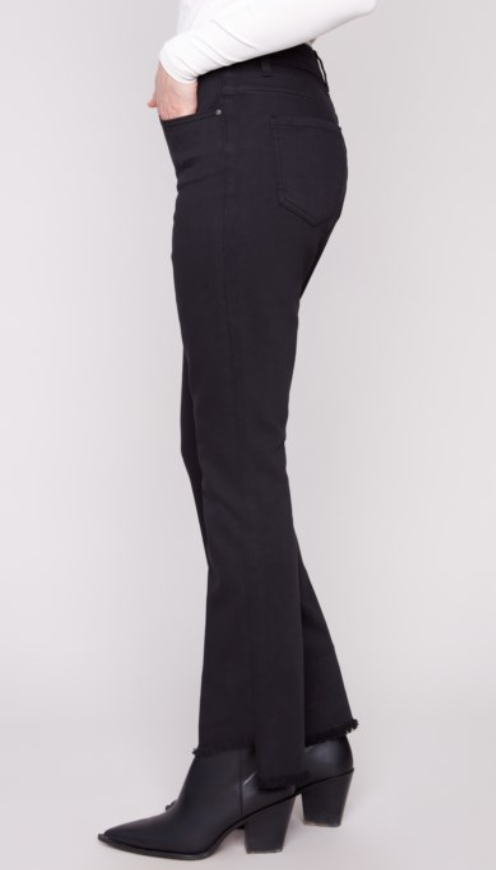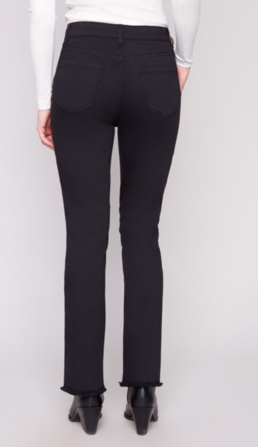 Bootcut Leg 5 Pocket Colored Twill Pants With Asymmetrical Hem