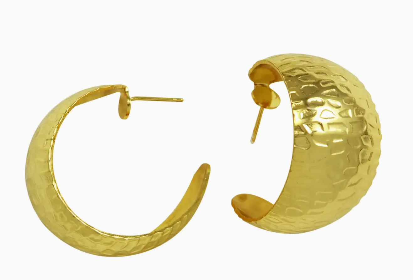 Design Hoop Earrings 18k Gold Plated - Textured Shiny Finish 1.27" diam.