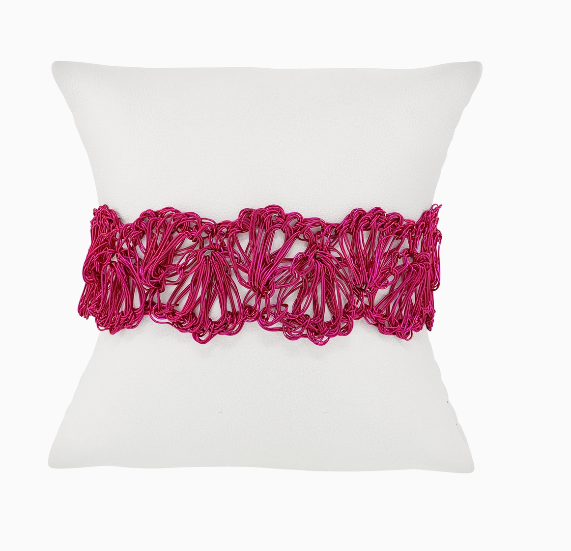 Made with shiny enameled wire by highly skilled Brazilian artisans, this bracelet was created to make a statement without being big or bulky. It’s light, comfortable, and can be worn on any occasion. Made from hypoallergenic and nickel-free materials. Stunning jewelry that will last for a lifetime. Cuff secures through magnetic clasp Cuff length approx. 7 inches Cuff width approx. 0.8 inches Hand Crocheted Enameled Wire Made in Brazil