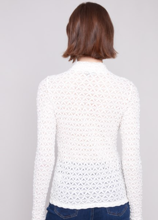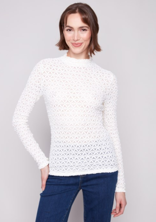 Long Sleeve Knit Lace Mock Neck Top
